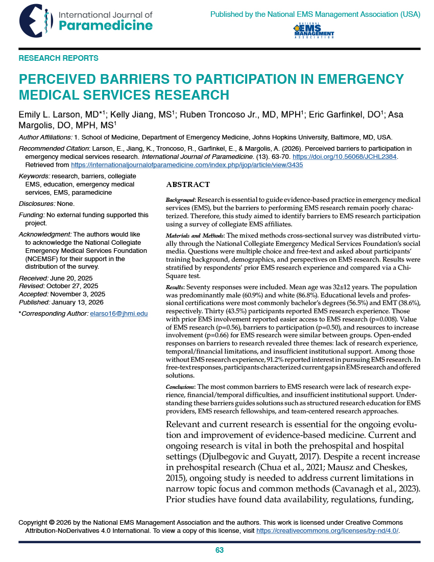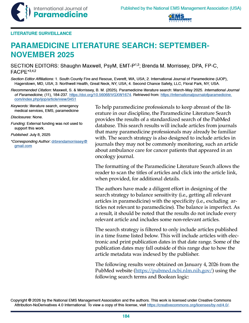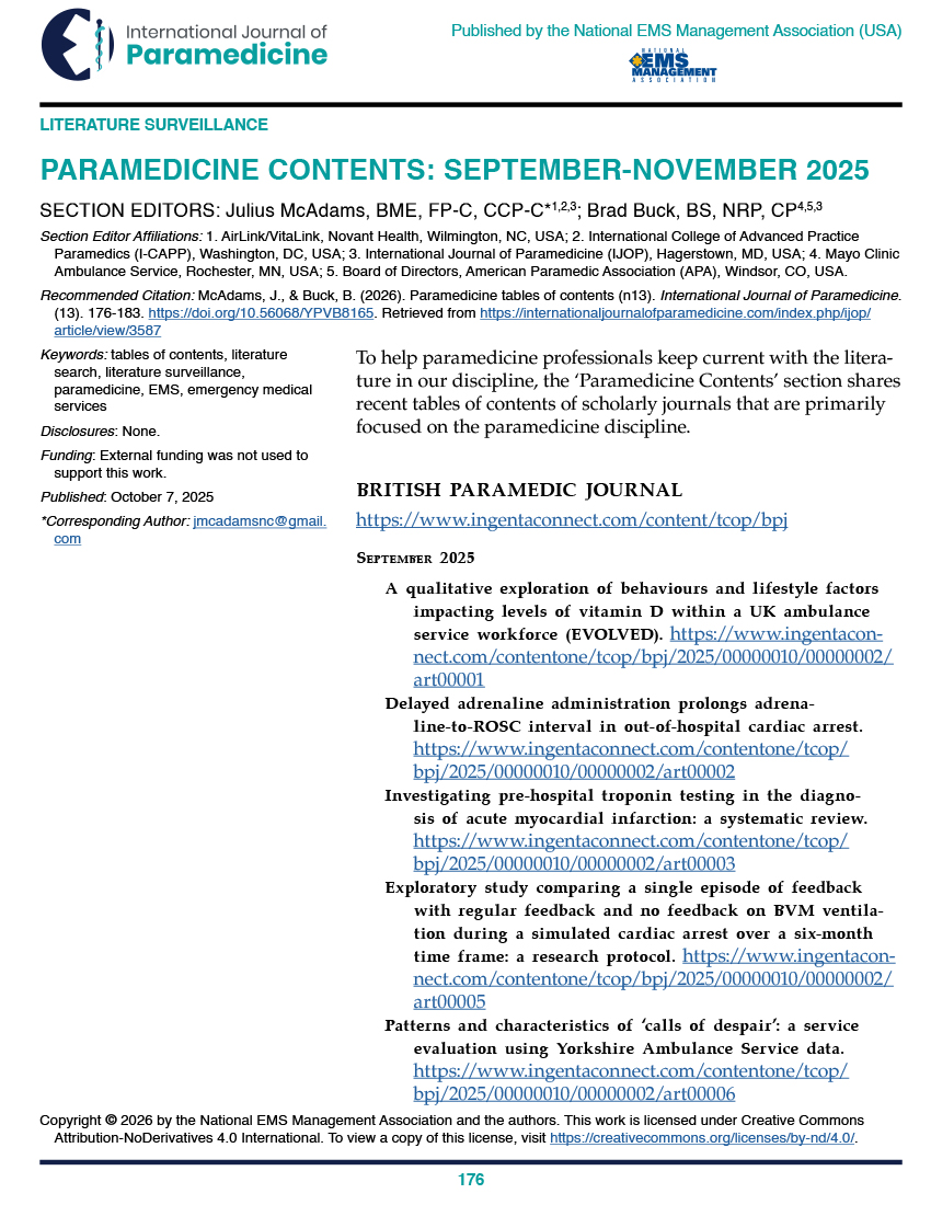 A Literature Review of Paramedicine and Other Health Professions